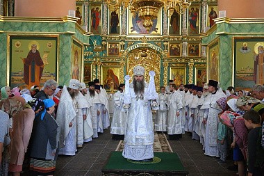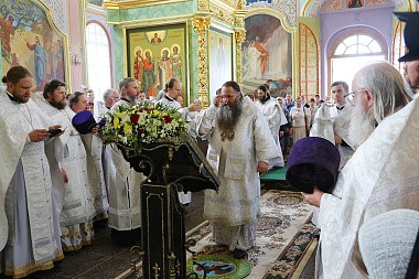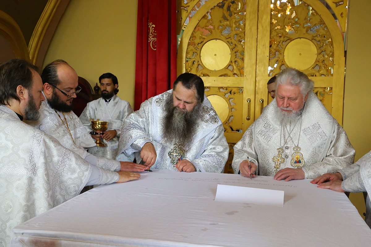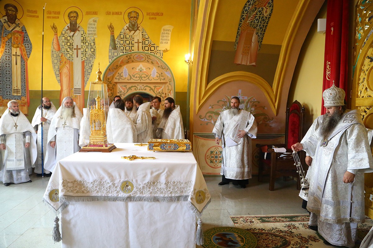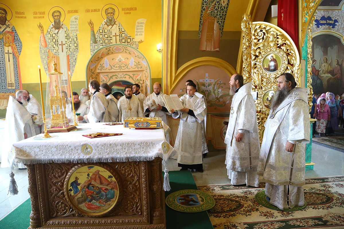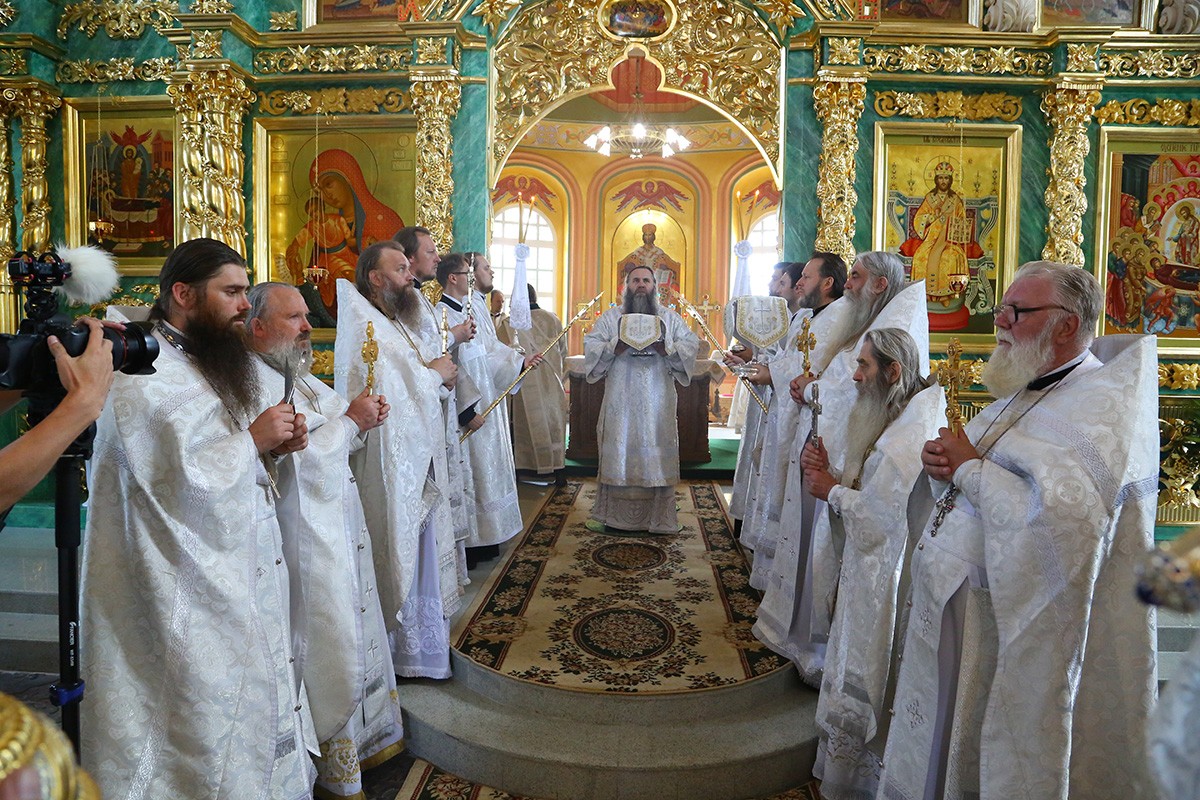 Освящение собора и литургия состоялись в день празднования Собору Архангела Гавриила. Владыка Георгий заметил, что видит в этом совпадении особый покров Царицы Небесной над этой обителью, Божию к ней милость: «Мы не выбирали эту дату специально. Сегодня, открывая святцы, я увидел, что сегодня праздник Собору Архангела Гавриила – высшего ангела из семи, которые предстоят пред Славой Божией. Именно Архангелу Гавриилу было дано возвещать тайные вести от Господа. Именно он возвестил Деве Марии главную весть от Бога для всего рода человеческого о рождении по плоти от Нее Господа Иисуса Христа. Он также явился Матери Божией перед Ее земной кончиной – Успением, утешая и преподавая Ей благословение».