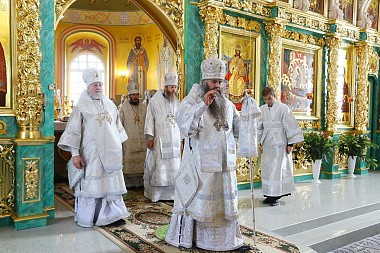 Его Высокопреосвященству сослужили священноархимандрит Флорищевой пустыни епископ Выксунский и Павловский Варнава, викарий Нижегородской епархии епископ Балахнинский Илия, епископ Лысковский и Лукояновский Силуан, настоятель Оранского монастыря в честь Владимирской иконы Божией Матери архимандрит Нектарий (Марченко), настоятель Нижегородского Вознесенского Печерского монастыря архимандрит Тихон (Затёкин), настоятель Нижегородской Благовещенской обители архимандрит Александр (Лукин), настоятель нижегородского соборного храма в честь Пресвятой Живоначальной Троицы протоиерей Сергий Шалатонов и другие клирики митрополии.