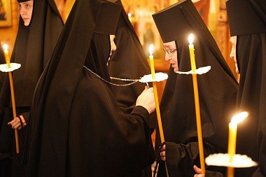 Вечером 3 апреля 2020 года, накануне праздника Похвалы Пресвятой Богородицы, в Свято-Троицком Серафимо-Дивеевском женском монастыре состоялись иноческие постриги одиннадцати послушниц обители.