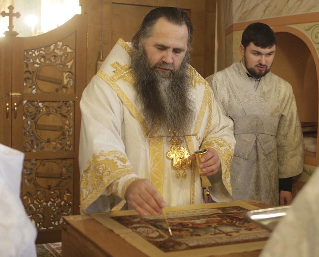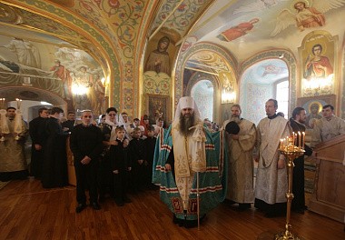 После Причастия перед иконой великомученицы Параскевы Пятницы владыка Георгий с сонмом духовенства исполнил величание святой.