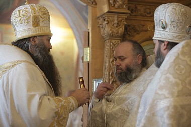 Затем во вновь освященном приделе была совершена Божественная литургия. Его Высокопреосвященству сослужило духовенство Нижегородской епархии и братия обители в священном сане. Во время Литургии была совершена хиротония иеродиакона Тимофея (Друца) в иеромонаха.