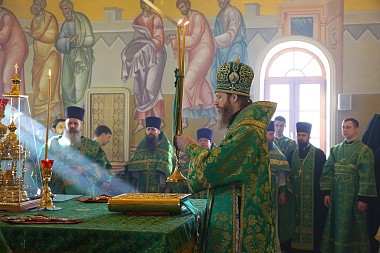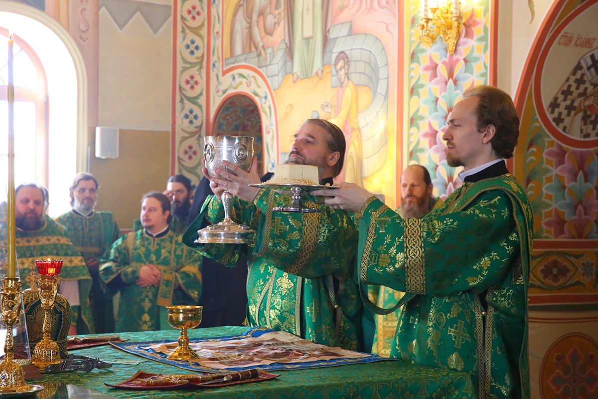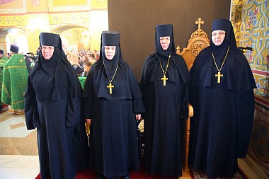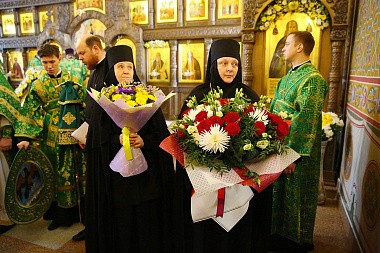 За богослужением молились настоятельница Иверского Выксунского монастыря игумения Антония (Миронова), настоятельница Абабковского Николаевского Георгиевского женского монастыря игумения Никона (Желякова), настоятельница Дальне-Давыдовского монастыря игумения Руфина (Тарасенко) и старшая сестра возрождающегося Свято-Троицкого Островоезерского монастыря монахиня Серафима (Беляева).