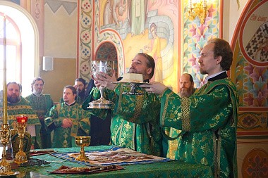 В завершение нижегородский архипастырь поздравил епископа Варнаву с днем тезоименитства и преподнес имениннику образ преподобного Сергия Радонежского.