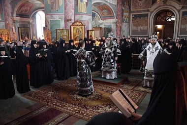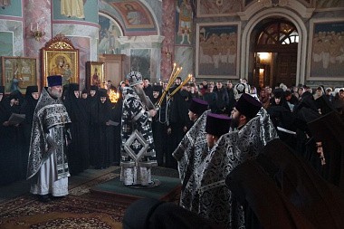 В храме молились настоятельница монастыря игумения Сергия (Конкова), насельницы, многочисленные паломники и прихожане обители.