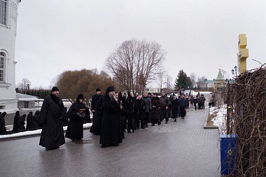 В Троицком соборе обители правящему архиерею сослужили викарий Нижегородской епархии епископ Дальнеконстантиновский Филарет, благочинный Саровского округа протоиерей Александр Долбунов, руководитель Административного секретариата епархии иерей Александр Тенькаев, старший священник Дивеевского монастыря иерей Владимир Каргин и другие клирики епархии.