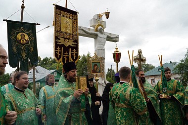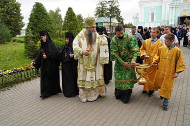 Затем митрополит Георгий с игуменией Сергией, насельницами обители и многочисленными богомольцами прошли крестным ходом по Святой Канавке Божией Матери.
