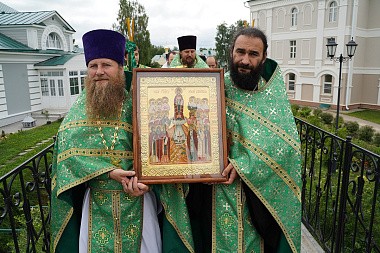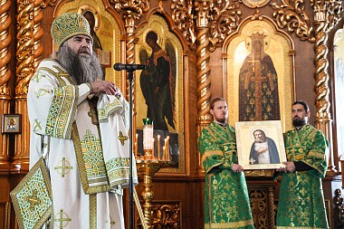 Во время богослужения на раку с мощами преподобного Серафима Саровского был временно возложен его святой образ, предназначенный для храма царственных страстотерпцев в Сарове.