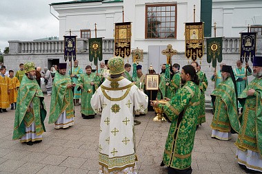 В честь Собора Дивеевских святых освящен придел в Успенском храме обители, где был совершен полный богослужебный круг: малая вечерня, всенощное бдение, параклис с молебном с водосвятием и Божественная литургия.