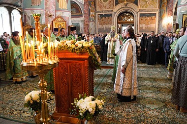 Молебен с акафистом преподобному Серафиму Саровскому и праздничную Божественную литургию в Троицком соборе обители возглавил митрополит Нижегородский и Арзамасский Георгий.