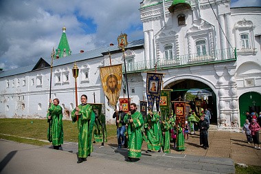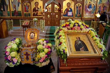 По окончании Божественной литургии состоялся крестный ход вокруг обители с преднесением ковчега с честной главой и образом преподобного Макария.