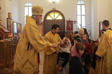 По окончании Литургии владыка Герман произнес для собравшихся проповедь, посвященную евангельскому повествованию, и преподал всем архипастырское благословение.