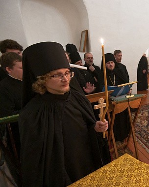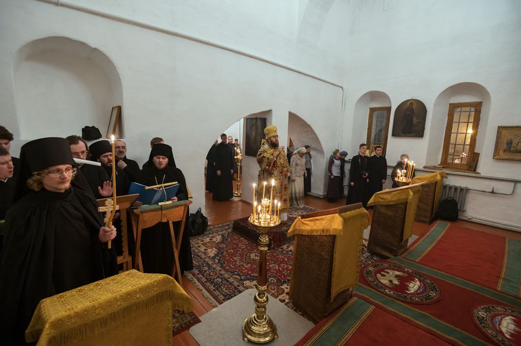 Церковные песнопения исполнил сводный хор студентов бакалавриата Вологодской семинарии и братии монастыря.