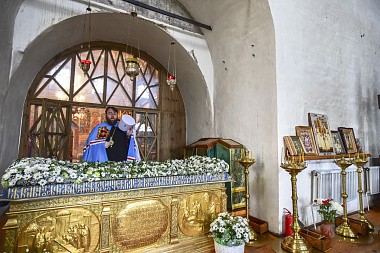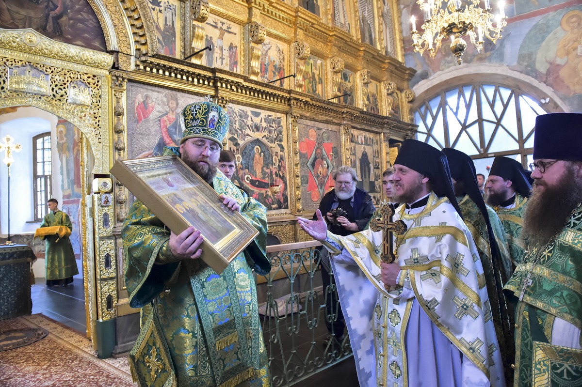 В престольный день обители правящий архиерей Вологодской епархии удостоил архиерейскими грамотами директора Кирилло-Белозерского музея-заповедника М.Н. Шаромазова, братию и прихожан.