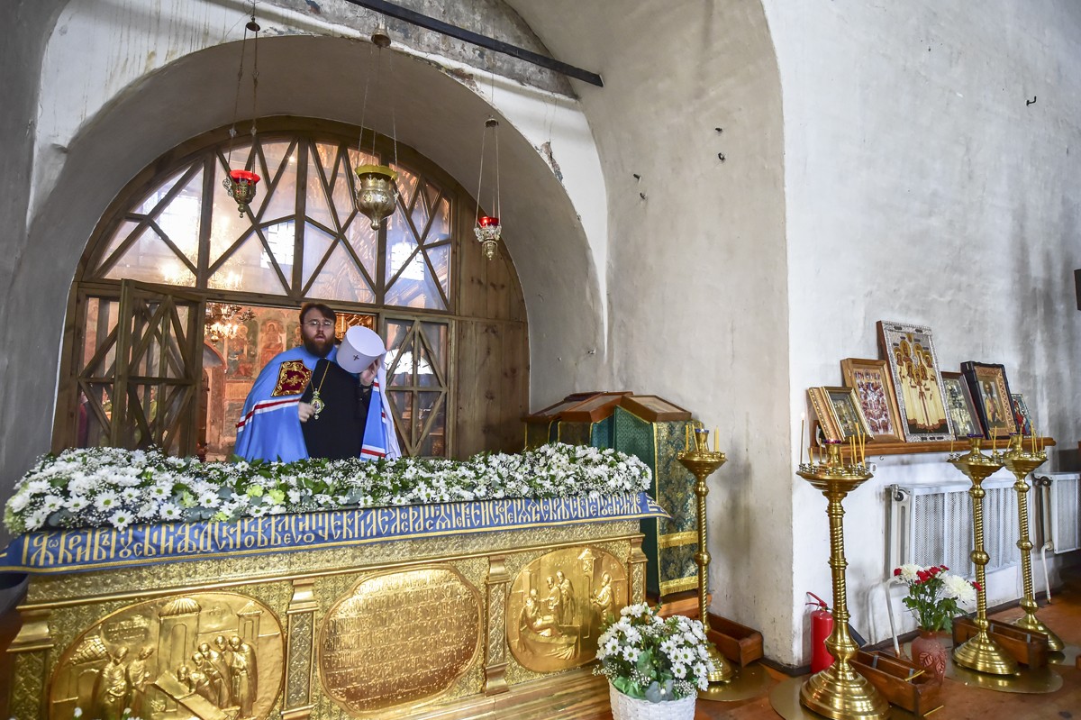 По прибытии в монастырь митрополит Игнатий поклонился раке с мощами преподобного Кирилла Белозерского, а затем в сослужении братии монастыря в священном сане, насельников Новоспасского ставропигиального мужского монастыря Москвы и клириков Вологодской епархии в Успенском соборе обители совершил праздничную Божественную литургию.