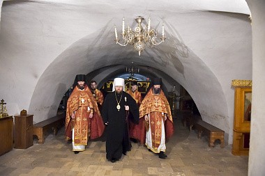 По приезду в обитель митрополит Игнатий в криптовом храме приложился к святыням Спасо-Прилуцкого монастыря.