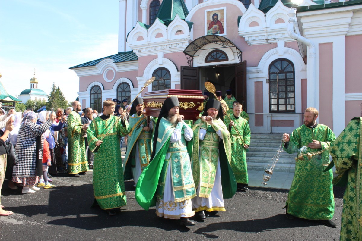 По окончании литургии состоялся крестный ход с ракой мощей преподобного Далмата Исетского.