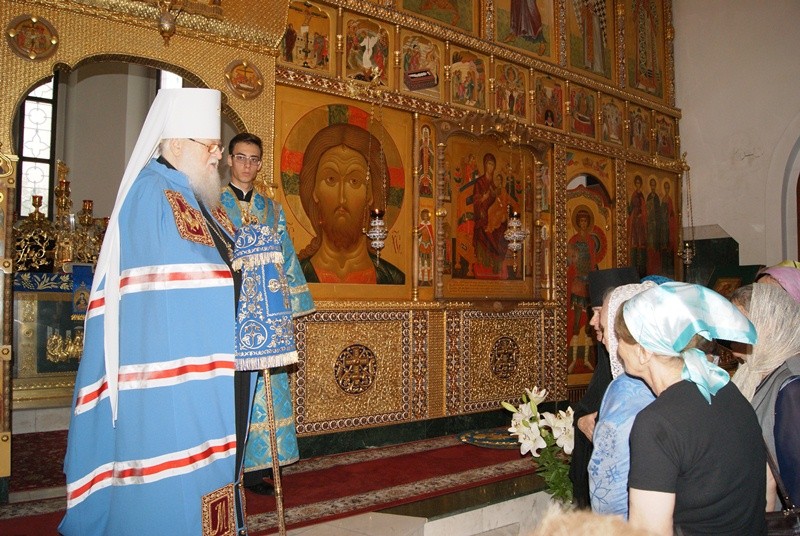 Высокопреосвященнейший Исидор обратился к молящимся с архипастырским словом. Владыка поздравил игумению Неониллу, сестер, священников обители и прихожан с престольным праздником, поблагодарил насельниц за ангельское пение.