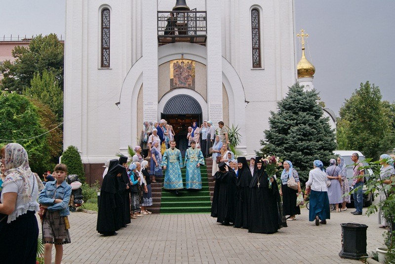 За Литургией молились игумения Неонилла (Кузьмина) с сестрами, прихожане, трудники, благодетели обители, группа паломников из Майкопской и Адыгейской епархий, пациенты находящегося рядом краевого онкологического диспансера. Богослужебные песнопения исполнил византийским распевом сестринский хор. Стены храма не вместили всех богомольцев, поэтому для стоящих во дворе и в монастырской лавке была включена радиотрансляция богослужения.