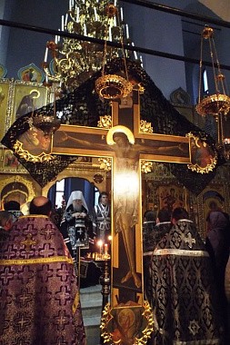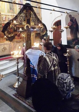 После коленопреклоненной молитвы Господу нашему Иисусу Христу состоялось поклонение Животворящему Кресту.