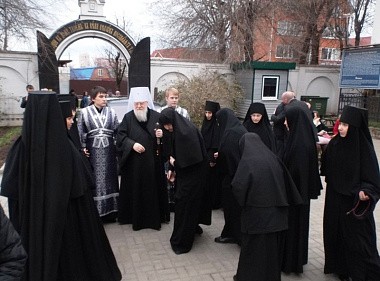 За богослужением молились настоятельница монастыря игумения Неонилла (Кузьмина) с сестрами, прихожане и гости обители, прихожане из других храмов г. Краснодара, пациенты расположенного рядом с обителью краевого онкологического диспансера.
