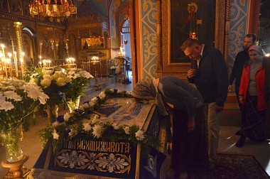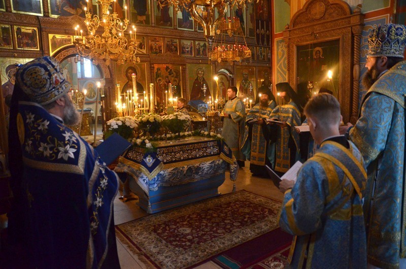 Пусть ничто нечистое не посещает нас в эти священные минуты, когда мы идем на погребение Матери Божией,идем со знанием того, что буквально через какое-то мгновение Господь воскресит Свою Матерь и возьмет к Престолу Божию.И с того мгновения Матерь Божия – первая Ходатаица за род человеческий. И пусть каждый из нас обращается к Ней со своими искренними сердечными молитвами, прося Ее склонить к милости Суд Божий, покрыть нас Своим честным Омофором, избавить нас от всякого зла».
