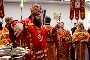 У ворот монастыря архипастыря встретили настоятельница обители игумения Михаила (Коровина) с сестрами, заместители Главы муниципального образования «Дорогобужский район» Е.С. Новицкая и Г.Н. Иванова, духовенство, прихожане и паломники.