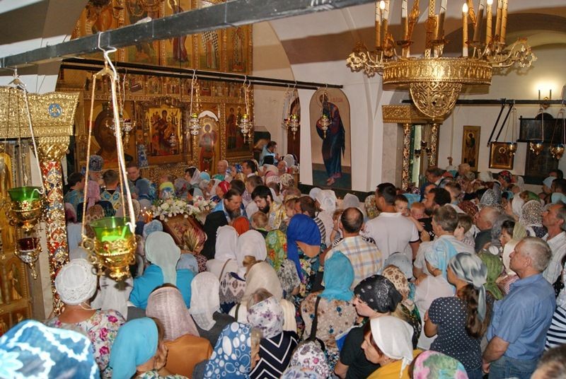 Храм «Всецарица» не вместил всех богомольцев, поэтому для стоявших на паперти и во дворе велась аудиотрансляция Литургии.