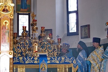 По окончании Литургии владыка Исидор прочел молитву пред иконой «Всецарица» и было исполнено величание.