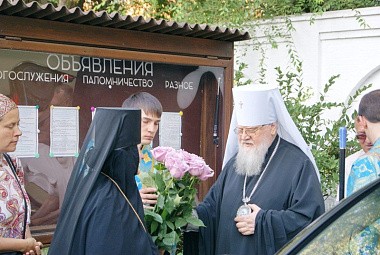 Затем Его Высокопреосвященство обратился к молящимся с архипастырским словом, поздравил игумению Неониллу, сестер, священников обители и прихожан с престольным праздником, поблагодарил за вознесенные совместные молитвы.
