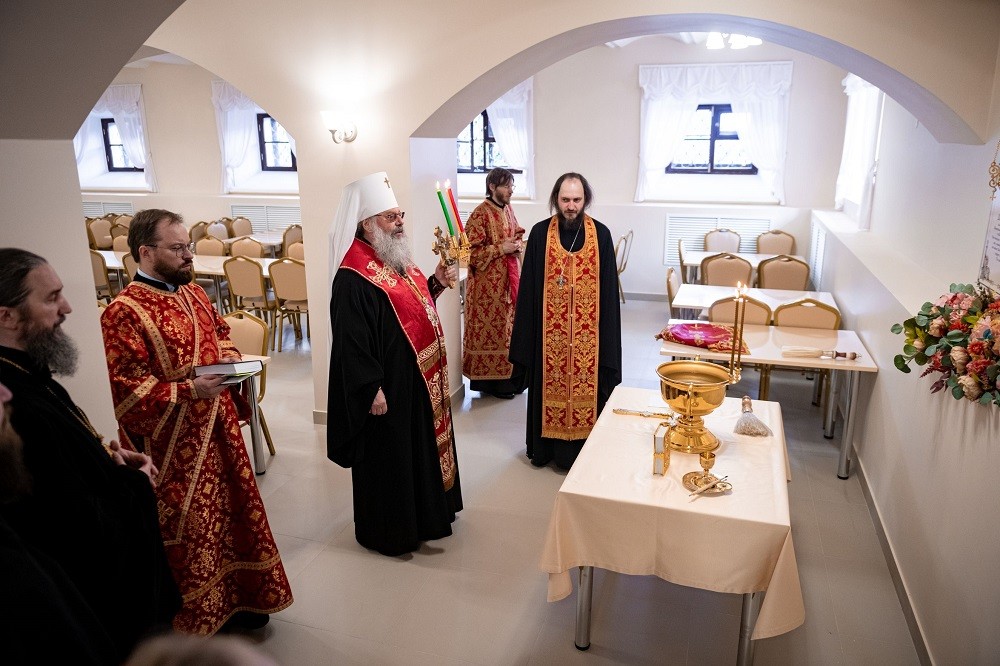 10 мая 2023 года по окончании Божественной литургии в Пещерном храме Казанского собора Казанско-Богородицкого мужского монастыря митрополит Казанский и Татарстанский Кирилл совершил освящение новой паломнической трапезной в Богородицкой обители.