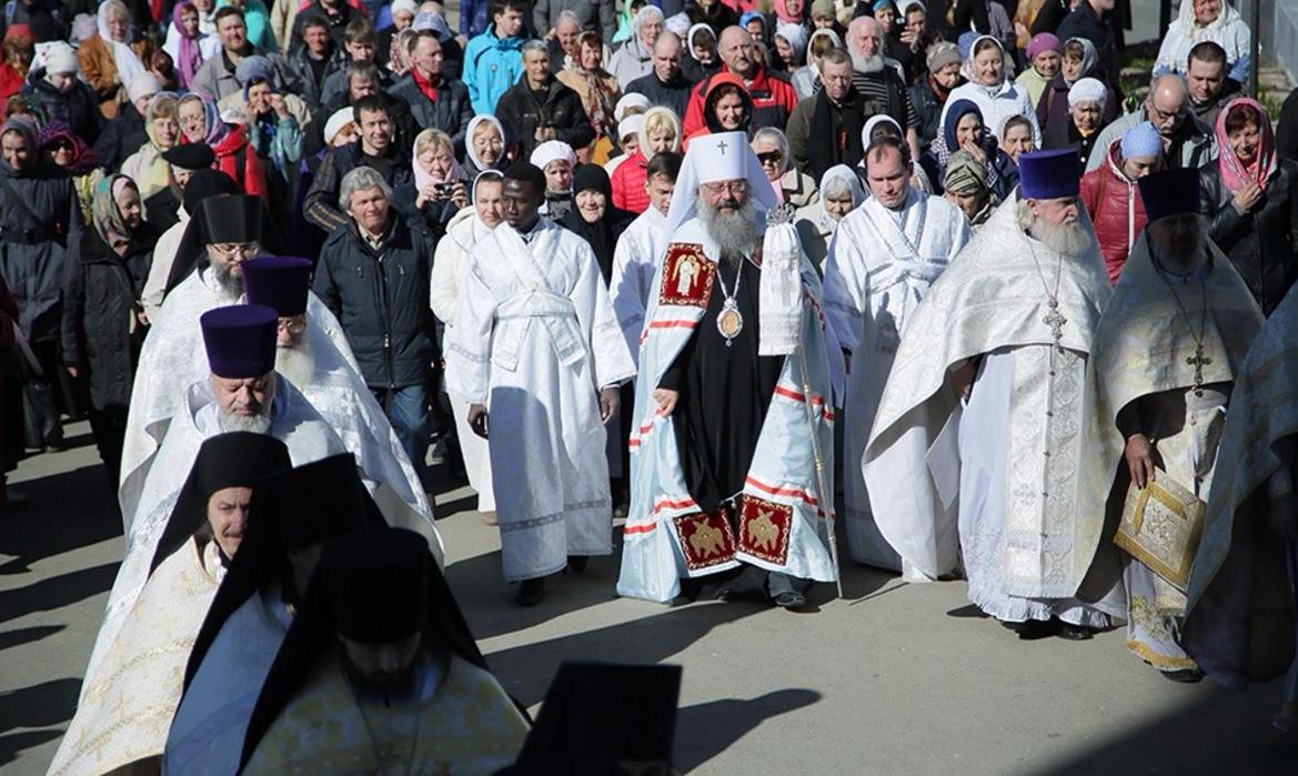 По окончании богослужения состоялся крестный ход вокруг собора.