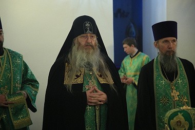 Преосвященным архипастырям сослужили: секретарь митрополита Екатеринбургского и Верхотурского иеромонах Кирилл (Корытко), наместник мужского монастыря во имя Святых Царственных страстотерпцев архимандрит Пимен (Адарченко), духовник Александро-Невской Ново-Тихвинской женской обители схиархимандрит Авраам (Рейдман), а также духовенство Александро-Невского Ново-Тихвинского женского монастыря и Екатеринбургской епархии.