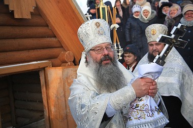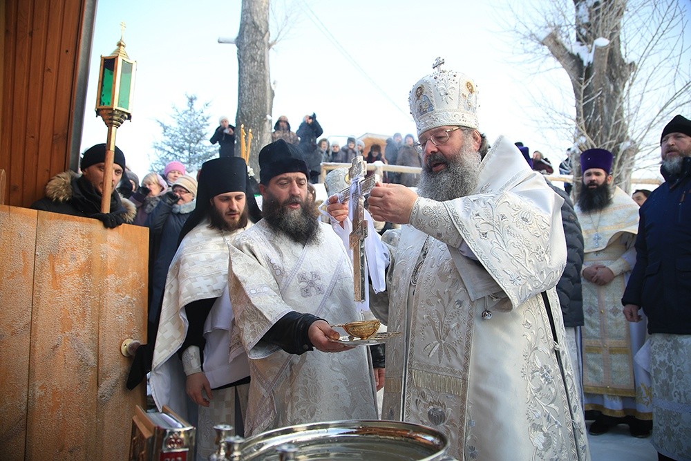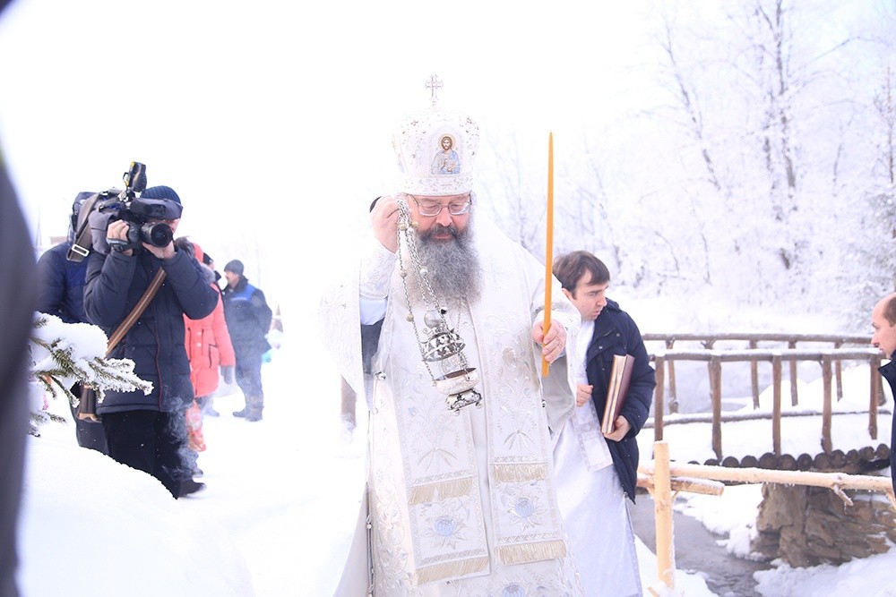По окончании богослужения митрополит Кирилл в сослужении духовенства и молящихся совершил Великое освящение воды.