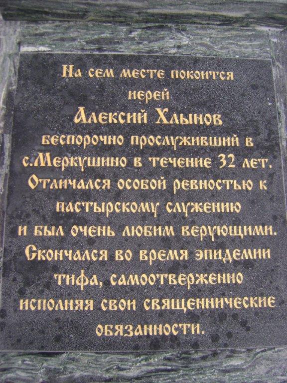 Старожилы села на многие годы сохранили воспоминание о том, как отец Алексий усыновил ребенка. В голодный год в Меркушино пришли татары с Поволжья. В одной татарской семье к тому времени, когда они добрались до села, муж и жена были уже близки к смерти от истощения. Их сын Махмут вскоре остался круглым сиротой. Отец Алексей Хлынов крестил его, назвал Михаилом и усыновил. В семье Хлыновых мальчик вырос прекрасным человеком и всегда глубоко почитал своих приемных родителей.