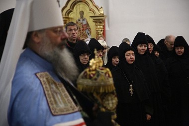 За богослужением молились настоятельница Александро-Невского Ново-Тихвинского женского монастыря игумения Домника (Коробейникова), настоятельница Верхотурского женского монастыря Покрова Божией Матери игумения Магдалина (Сулеменова), настоятельница Боголюбского женского монастыря игумения Питирима (Лисицына).