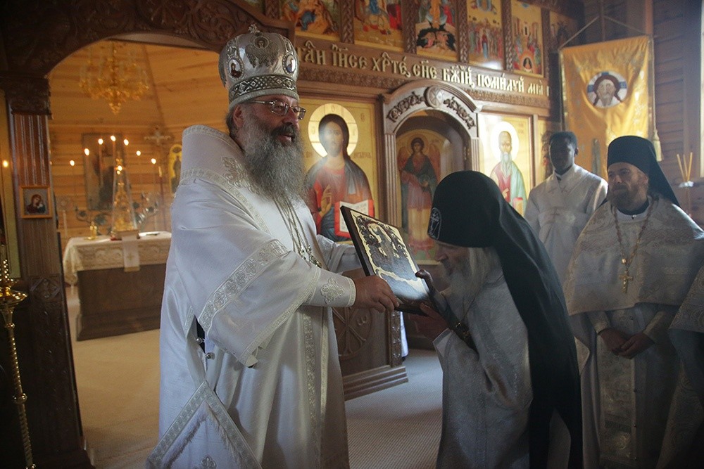 В завершение владыка передал в дар Иоанно-Богословскому скиту Евангелие, преподнесенное Святейшим Патриархом Московским и всея Руси Кириллом для новых храмов Екатеринбургской епархии в ходе его Первосвятительского визита в Екатеринбургскую митрополию в дни празднования столетия мученического подвига святых царственных страстотерпцев.