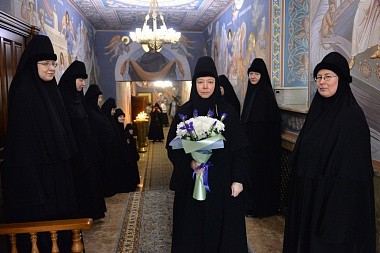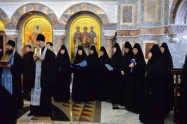 За богослужением молились настоятельница Ново-Тихвинской обители игумения Домника (Коробейникова) с сестрами.