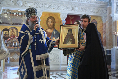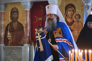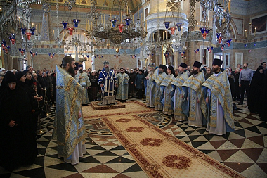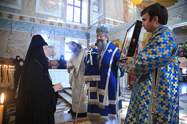 Его Высокопреосвященству сослужили: духовник обители схиархимандрит Авраам (Рейдман), наместник мужского монастыря во имя Святых Царственных страстотерпцев в урочище Ганина Яма архимандрит Пимен (Адарченко), наместник Свято-Николаевского Верхотурского мужского монастыря игумен Иероним (Миронов), наместник мужского монастыря Свято-Косьминская пустынь игумен Петр (Мажетов), духовенство Екатеринбургской епархии.