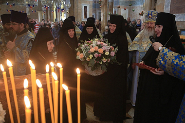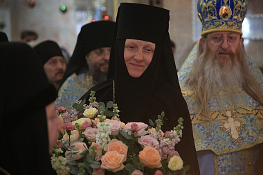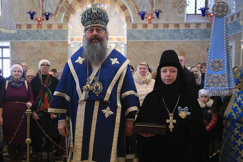 По окончании Литургии митрополит Кирилл поздравил с юбилеем настоятельницу обители игумению Домнику (Коробейникову), которая в этот день отметила свое 50-летие, и вручил награду от Святейшего Патриарха Московского и всея Руси Кирилла – орден святой равноапостольной княгини Ольги.