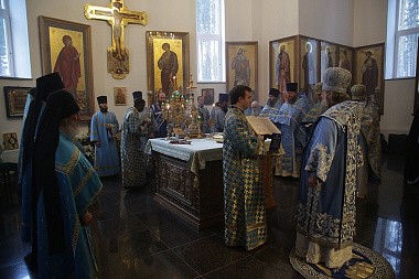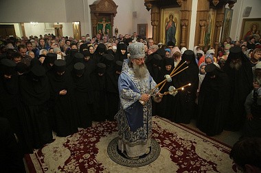 За богослужением молились насельницы женского монастыря в честь иконы Божией Матери «Спорительница хлебов» во главе с игуменией Варварой (Крыгиной).