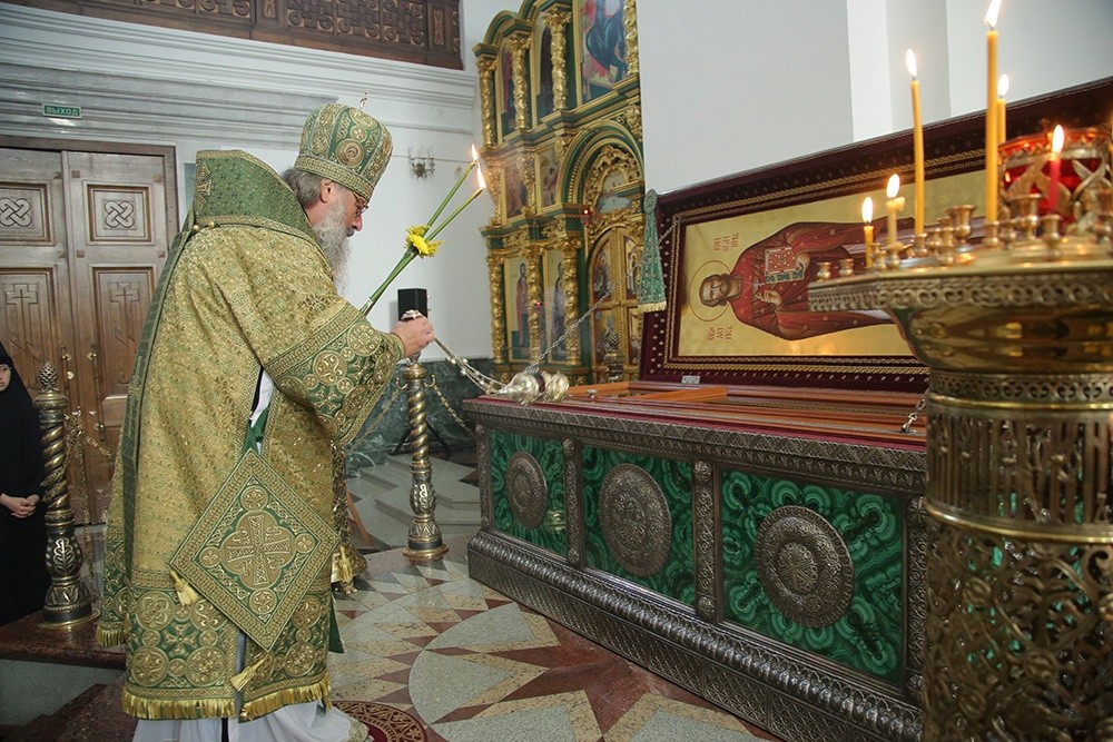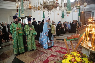 За Литургией молились игуменияДомника (Коробейникова) настоятельница Александро-Невского Ново-Тихвинского женского монастыря с насельницами Свято-Симеоновского подворья обители и игумения Магдалина (Сулеменова) настоятельница Свято-Покровского женского монастыря в Верхотурье с сёстрами.