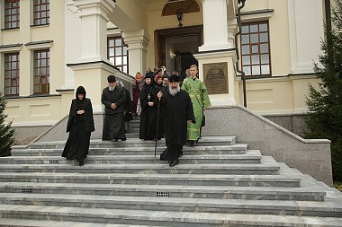 По завершении богослужения владыка Кирилл, духовенство и паства под пение сестер Ново-Тихвинской обители совершили крестный ход в храм во имя святого Симеона Верхотурского, где приложились к гробнице с цельбоносным источникоми помолились покровителю Урала и Сибири. После чего архипастырьпоздравил всех с днем памяти праведного Силуана Афонского и наступающим праздником праведного Симеона Верхотурского.