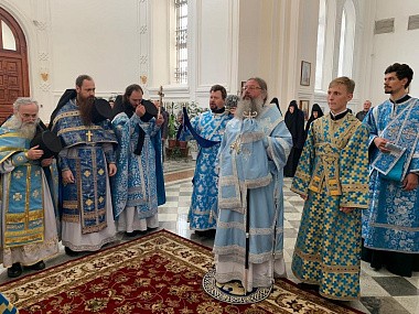 Его Высокопреосвященству сослужили: секретарь епархиального управления Екатеринбургской епархии иеромонах Кирилл (Корытко), наместник Свято-Николаевского монастыря игумен Иероним (Миронов), советник правящего архиерея по правовым вопросам, настоятель храма «Большой Златоуст» г. Екатеринбурга иерей Виктор Явич, братия обители в священном сане и клирики Екатеринбургской епархии.