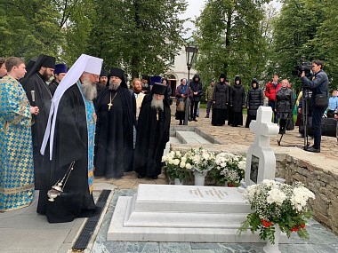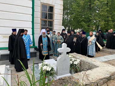 По завершении Божественной литургии владыка Кирилл в сослужении духовенства отслужил панихиду по игумену Лавру (Короткову).