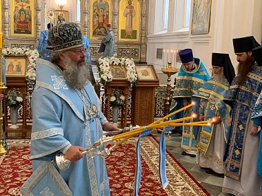 31 августа 2019 года, в празднество иконы Божией Матери, именуемой «Всецарица», день памяти мучеников Флора и Лавра, митрополит Екатеринбургский и Верхотурский Кирилл совершил Божественную литургию в Крестовоздвиженском соборе Свято-Николаевского Верхотурского мужского монастыря.