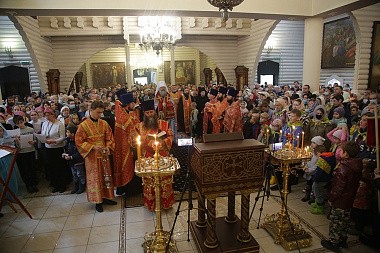 За богослужением молились дети – воспитанники воскресных и общеобразовательных школ, родители, педагоги, кадеты и представители молодежных приходских организаций патриотической направленности.