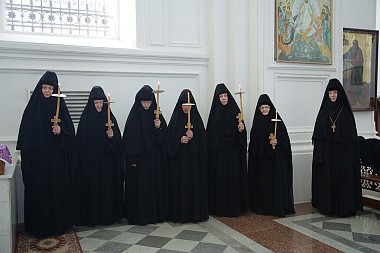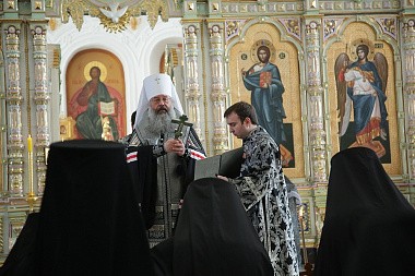 По завершении богослужения правящий архиерей совершил монашеский и иноческий постриги двух насельников Свято-Николаевской обители.