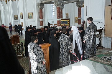 10 апреля 2019 года, в среду 5-й седмицы Великого поста, митрополит Екатеринбургский и Верхотурский Кирилл совершил Литургию Преждеосвященных Даров в Крестовоздвиженском соборе Свято-Николаевского Верхотурского мужского монастыря.