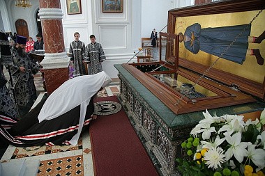 Его Высокопреосвященству сослужили: секретарь епархиального управления Екатеринбургской епархии иеромонах Кирилл (Корытко), наместник Свято-Николаевского монастыря игумен Иероним (Миронов), братия обители в священном сане и клирики Екатеринбургской епархии.