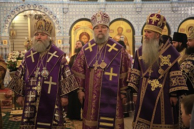 Богослужение совершил митрополит Екатеринбургский и Верхотурский Кирилл совместно с архипастырями – главами епархий Уральского федерального округа, прибывшими молитвенно почтить память царя-мученика.